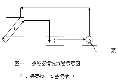 根据****公司的要求及结合我们的清洗经验,决定采用如下的清洗方案;(图一中的1#换热器为二个流程同时清洗时的临时接管示意图)